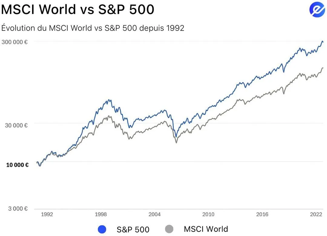 Par exemple, le S&P 500 contient 500 grandes entreprises américaines de secteurs variés (technologie, santé, finance, énergie, etc.). Si le secteur technologique baisse un temps, les autres secteurs peuvent limiter les pertes. Le MSCI World va encore plus loin en incluant des entreprises de nombreux pays différents, ce qui protège aussi contre les problèmes économiques d’un seul pays.
