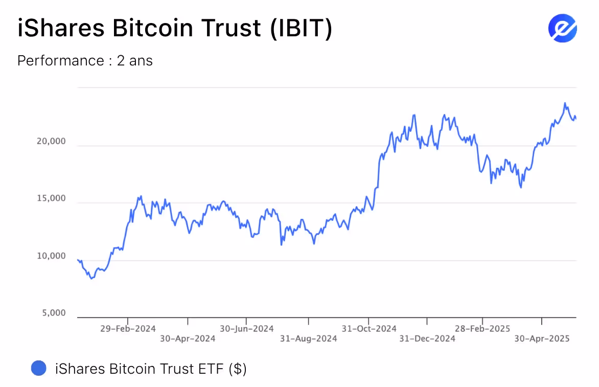 En effet, si vous vous intéressez aux cryptomonnaies, vous avez sûrement entendu parler de l’iShares Bitcoin Trust (IBIT), lancé en janvier 2024.