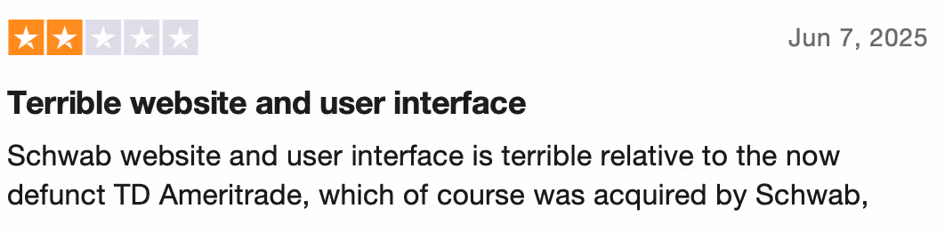 Sur Trustpilot, Charles Schwab reçoit une note très basse de 1,5/5, ce qui reflète une insatisfaction notable de la part de nombreux utilisateurs. Les critiques portent souvent sur les délais de retrait, ainsi que sur la qualité du support client, en particulier pour les comptes standards.