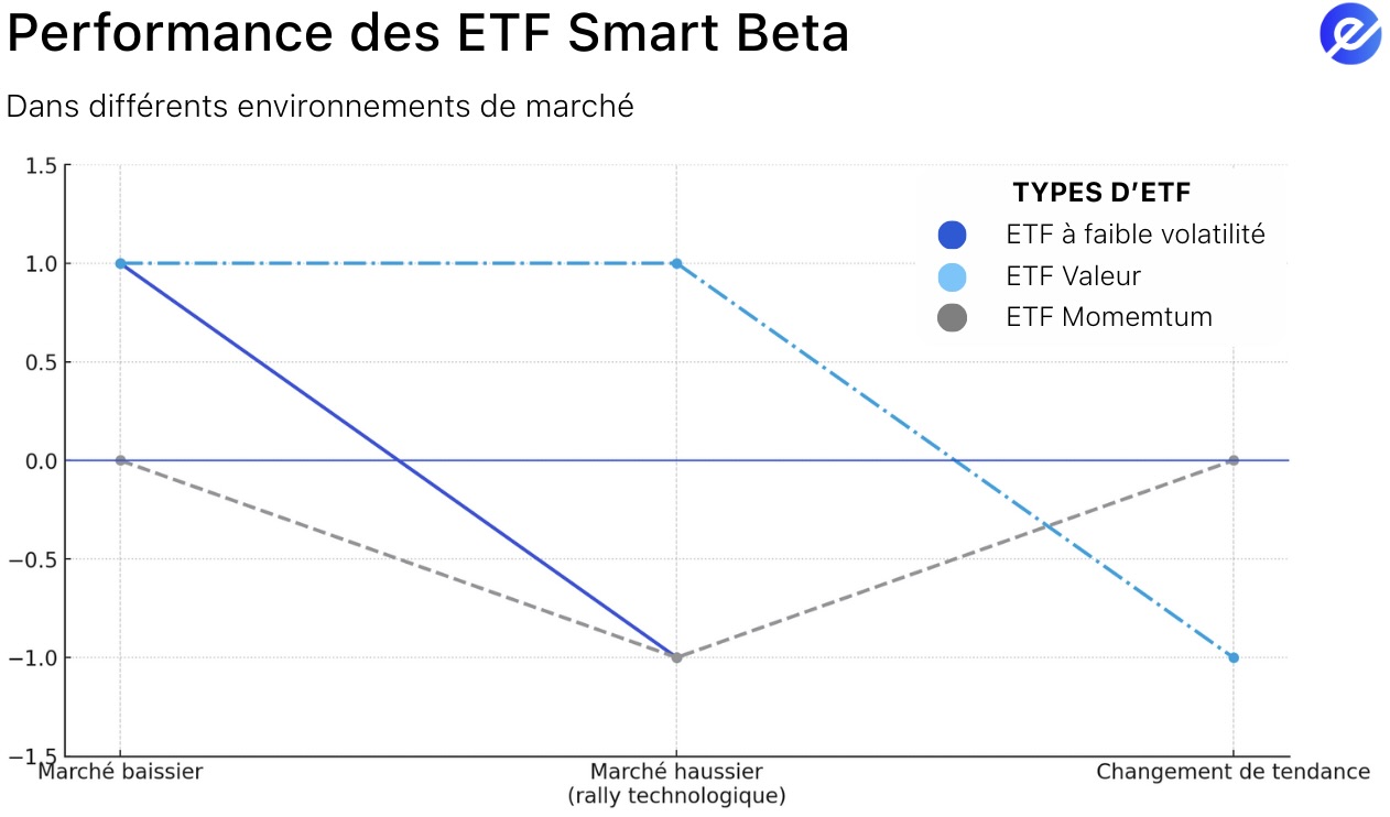 Même s’ils sont conçus pour surperformer le marché, les ETF Smart Beta peuvent sous-performer dans certaines conditions. Par exemple, les ETF Faible Volatilité peuvent être à la traîne lors des marchés haussiers, les ETF Valeur peuvent sous-performer pendant les rallyes menés par le secteur technologique, et les ETF Momentum peuvent rapidement se retourner si les tendances changent.